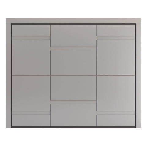 Marked millings create bas-relief solutions that transfer personality and rigour to the panel. The possibility of inserting a coplanar trim to the handle will contribute to enhancing the design and elegance.